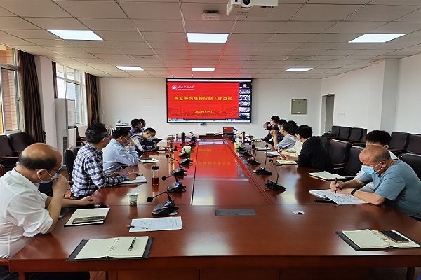 会议传达了全国和省新冠肺炎疫情防控工作会议精神,通报了湖北师范大学新冠肺炎疫情防控工作情况,三个部门单位进行了发言。湖北师范大学党委副书记、校长李宏在讲话中强调要提高政治站位,加强组织领导,严把各项措施,压紧压实责任链条,以“点、线、面”为重点加强管控,持续巩固校园疫情防控成果。
