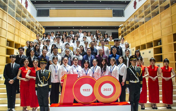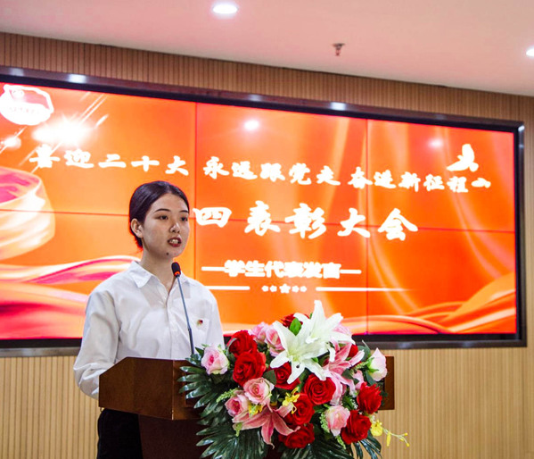 大会在高亢激昂的团歌声中拉开帷幕。新发展团员举行了集中宣誓仪式,校团委书记陈荟芸宣读了《关于2021-2022年度共青团先进集体和先进个人的表彰决定》,杨之毛副书记等领导分别为市级、校级“优秀共青团员”、“优秀共青团干部”、“红旗团支部”和“红旗团总支”获奖代表颁奖。市级优秀共青团干部尹誉霖、优秀学生代表武如钰分别作了代表发言。最后,本次五四表彰大会在《没有共产党就没有新中国》的嘹亮歌声中圆满落下帷幕。