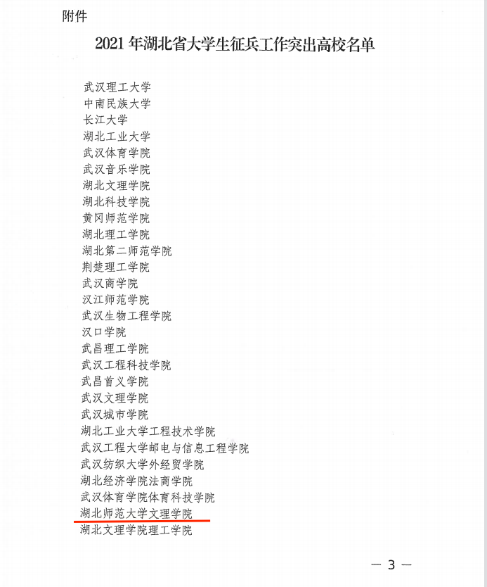 日前,湖北省教育厅和湖北省人民政府征兵办公室联合发文,对2021年全省高校征兵工作突出单位进行通报表彰,球探qiutan(中国)官方获评全省高校征兵工作突出单位。