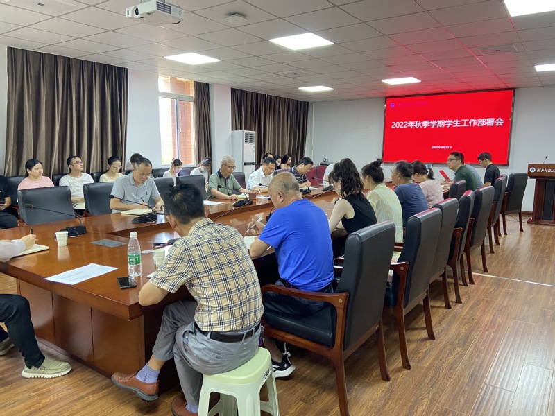 8月23日下午,球探qiutan(中国)官方在行政楼303会议室召开2022年秋季学期学生工作部署会。党委书记杨邓红,副院长张志华、王胜国,各学部书记、全体学生工作部人员和辅导员参会。会议由党委副书记杨之毛主持。