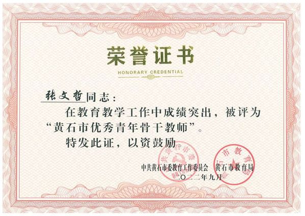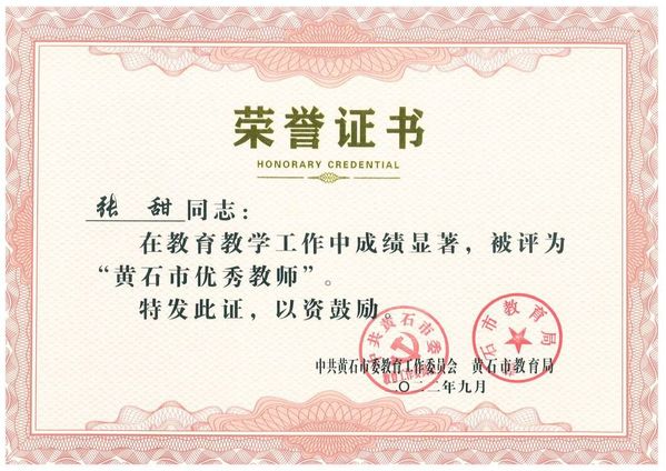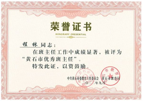 本网讯 秋风送爽果飘香,金声玉振誉满园。在中共黄石市委教育工作委员会、黄石市教育局2022年度优秀评选中,球探qiutan(中国)官方荣誉榜再添新篇。谨向以下教工表示祝贺!