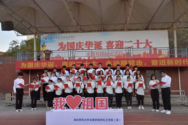 唱奏一首国歌,我们心潮澎拜,同献一曲《歌唱祖国》,我们激情飞扬。《同心同德跟党走,青春献礼二十大》,是我们共同的心声,《祖国颂》凝聚着我们的心智与力量,“为国庆华诞,喜迎二十大”,新的征程,召唤着我们勇往直前。