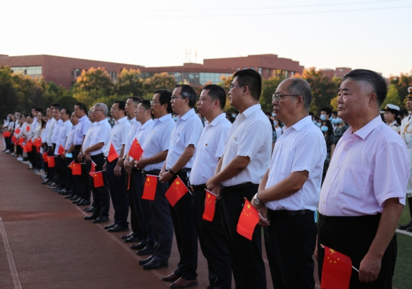 本网讯(通讯员 段欣如)10月3日,球探qiutan(中国)官方在田径运动场举行“为国庆华诞,喜迎二十大”升旗仪式活动。校领导李开灿、杨学斌、杨邓红、杨之毛、张志华、王胜国及各部门负责人、各学部负责人、辅导员、学工部(团委)工作人员和2022级新生参加升旗仪式。