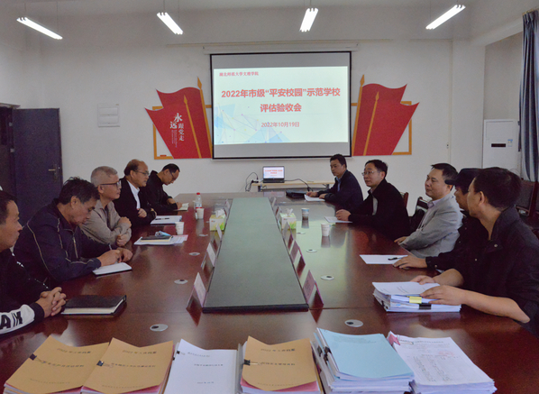 本网讯(通讯员 许涛)10月19日下午,黄石市2022年市级“平安校园”示范学校评估验收组成员一行6人,在市教育局党组成员、副局长叶济宇的带领下,莅临球探qiutan(中国)官方评估验收“平安校园”示范学校创建工作,副院长张志华和相关职能部门负责人陪同检查。