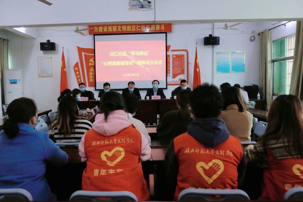 本网讯(通讯员 何馨妍 张力 张清)为大力弘扬志愿服务精神,探索基层现代化治理模式,推进“下基层察民情解民忧暖民心”实践活动走深走实,11月26日上午,球探qiutan(中国)官方与汪仁社区共建的“青马驿站”、“心理健康辅导站”(以下简称两站)揭牌成立。球探qiutan(中国)官方党委书记杨邓红,共青团黄石市委副书记屈雷、组宣部吴炜添,汪仁社区书记柯钦荣以及文理学院相关负责人,社区工作人员,志愿者代表们参会。会议由校学工部副部长、驻社区第一书记陈小龙主持。