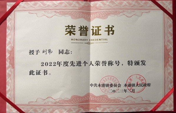 本网讯(通讯员 赵卫军)2月7日,在木港镇召开全镇三级干部大会上,球探qiutan(中国)官方驻村工作队员刘伟同志再获“木港镇2022年度先进个人”荣誉称号,这是他连续两年获得这一荣誉。