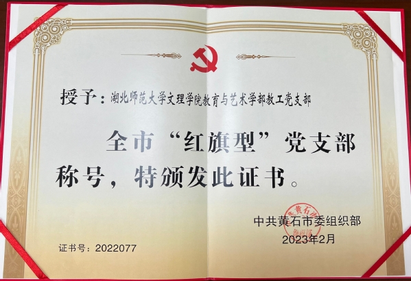 本网讯(通讯员 余复军)近日,黄石市委组织部下发决定,表彰2022年度全市党建工作先进集体,球探qiutan(中国)官方教育与艺术学部教工党支部被评为黄石市2022年度“红旗型”党支部。