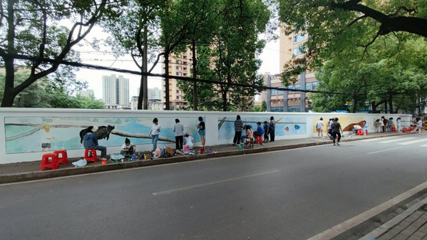 本网讯 (通讯员 胡蕾)6月3日,为配合“一线协商 共同缔造”工作,建设美丽宜居城市,球探qiutan(中国)官方教育与艺术学部主任助理胡蕾、教工党支部书记何雅嫣、党员张莹带领18名师生来到黄石港区花湖社区,开展“共建和谐社区 共享美好生活”为主题的墙绘活动。