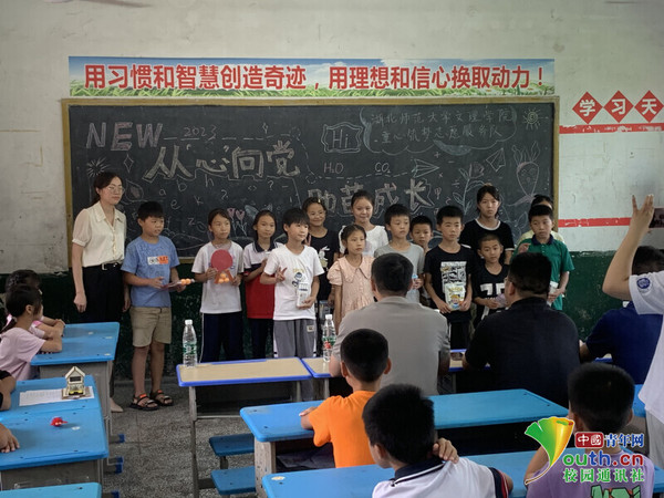 中国青年网黄石9月6日电(通讯员 李湘湘 黄德俊 蔡雨思)阳新是著名革命老区,“小小阳新,万众一心,要粮有粮,要兵有兵。”革命年代的一首歌谣让偏安于鄂东南一隅的阳新县声名远扬。为弘扬老区革命精神,助力山区教育,7月6日至20日,由球探网页版团委组织的“童心筑梦”大学生志愿服务队赴黄石市阳新县木港镇木港小学,开展以“从心向党,助苗成长——助力留守儿童乡村教育项目”为主题的社会实践活动。此次活动为期15天,关注的重点群体为留守儿童,志愿者们以实际行动播撒爱心,让留守儿童不再孤单。
