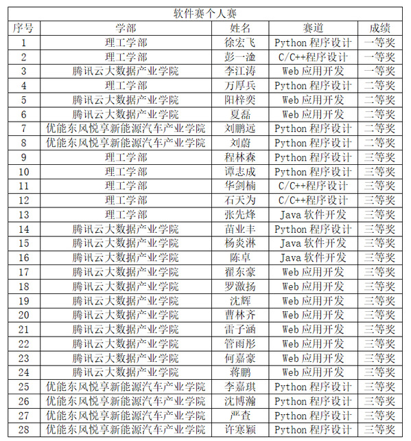 本网讯(通讯员 李哲昊)4月29日,由工业和信息化部人才交流中心主办的2024年第十五届蓝桥杯全国软件和信息技术大赛省赛成绩公布并揭晓获奖名单,我校40名同学获奖,其中彭一淦、徐宏飞、李江涛3位同学获得湖北省软件赛个人赛一等奖并进入国赛,万厚兵等5名同学获得湖北省软件赛个人赛二等奖,谭绍等3名同学获得湖北省电子赛个人赛二等奖,华剑楠等20名同学获得湖北省软件赛个人赛三等奖,吴毓洁等9名同学获得湖北省电子赛个人赛三等奖。