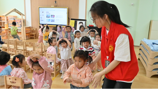 活动中,西塞山区第三幼儿园组织开展防震减灾专题班会,幼儿园教师与社区民警共同讲解防震教育片,并针对幼儿园年龄分布采取不同应急避震形式,让小朋友们学习地震时安全疏散的方法,以及防灾减灾的基本技能和常识。