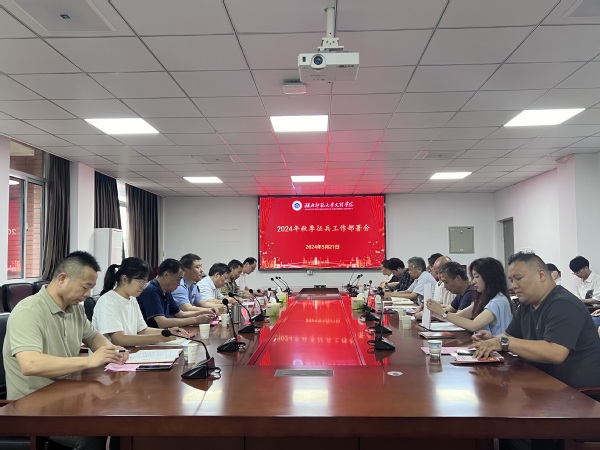 会上,征兵办秦雯雯老师对2024年春季征兵情况进行总结汇报,宣传部副部长陶晚成宣读征兵奖励决定,辅导员周筱芸老师进行征兵工作经验分享,学工部副部长陈小龙对2024年秋季征兵工作进行部署安排。