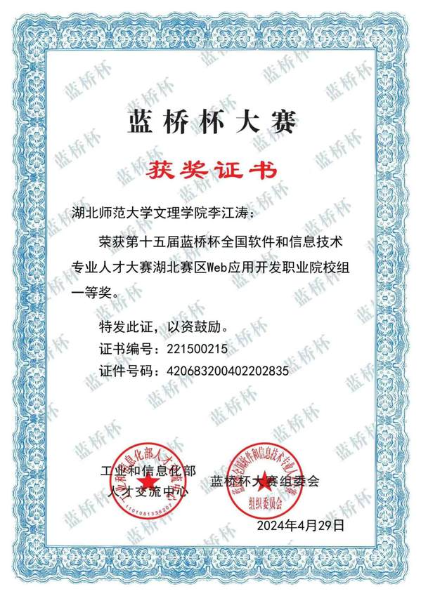 本网讯(通讯员 熊姿)6月4日,备受瞩目的第十五届“蓝桥杯全国软件和信息技术专业人才”大赛圆满落幕。球探qiutan(中国)官方腾讯云大数据产业学院李江涛同学凭借扎实的编程功底和创新的解题思路,荣获国赛三等奖,省赛一等奖。