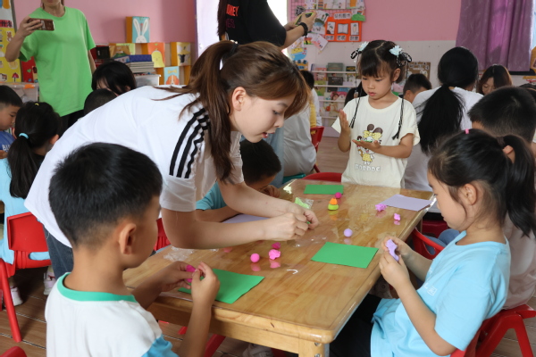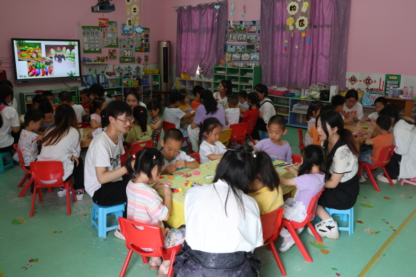活动过程中,同学们充分发挥专业优势,通过生动形象的讲解,向小朋友们详细介绍了端午节的历史渊源、传统习俗等知识。小朋友们踊跃参与问答互动,现场热闹非凡。讲解过后,学生们耐心地指导孩子们用橡皮泥制作粽子,为龙舟上色、画画。活动现场孩子们认真专注,充满欢声笑语。活动尾声,学生们给孩子们送上了自己准备的小礼物并合照留念。