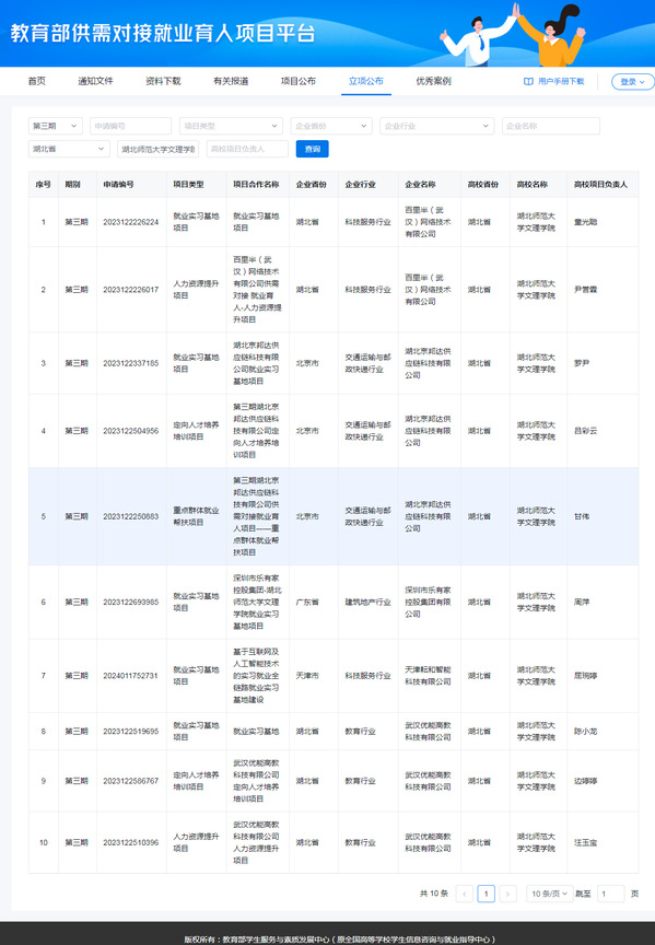 此次立项的项目类型涵盖了就业实习基地项目5项、定向人才培养培训项目2项、人力资源提升项目2项、重点群体就业帮扶项目1项。合作企业包括武汉优能高教科技有限公司、湖北京邦达供应链科技有限公司、百里半(武汉)网络技术有限公司、深圳市乐有家控股集团有限公司