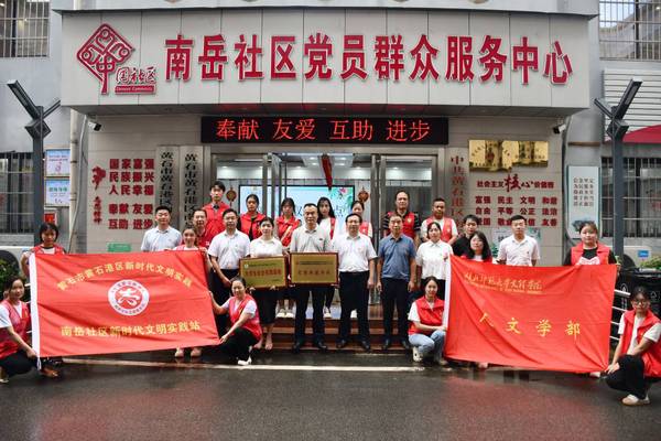 本网讯(通讯员 程胜伟)6月22日,球探qiutan(中国)官方人文学部“党团共建单位”、“大学生社会实践基地”在黄石港区南岳社区揭牌。校党委书记杨邓红、人文学部负责人,南岳社区南岳社区第一书记、市城发集团副总经理崔向云,黄石港区人大办公室主任喻向东,黄石港区沈家营街道党工委副书记、办事处主任杨哲,南岳社区党委书记、居委主任方和生,学生代表参加活动。