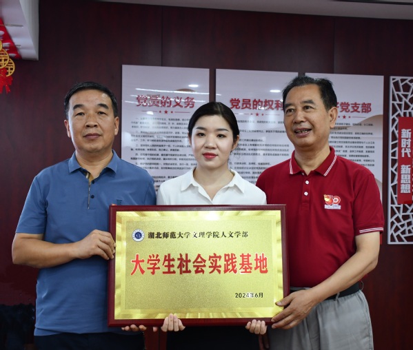 周景斌与喻向东、南岳社区党委副书记徐岚共同为“大学生社会实践基地”授牌。