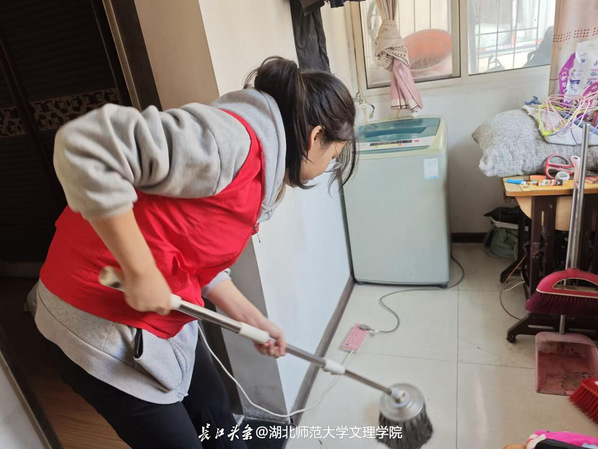当天下午,志愿者走进老人们的家中,帮助老人们打扫卫生,清理杂物,通过大家的共同努力,老人们的家中变得整洁明亮起来。志愿者一边打扫卫生一边与老人聊起了家常,询问老人的健康状况、生活需求、饮食起居,并再三叮嘱老人要保护好身体,注意饮食卫生。
