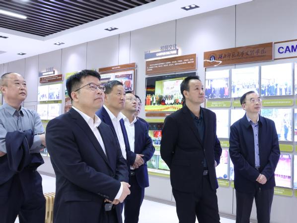 本网讯(图 朱家慧 邓司晨 文 翁典典)11月9日上午,湖北省教育厅党组成员、副厅长戴伟,科技处处长于立勇一行,在湖北师范大学党委书记李宏,校长雷儒金的陪同下,莅临学校调研指导工作,球探qiutan(中国)官方全体校领导参与调研。