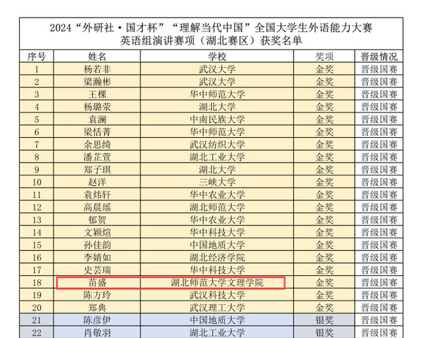 本网讯(通讯员 邓薇薇)11月10日,2024年“外研社·国才杯”“理解当代中国”全国大学生外语能力大赛(湖北赛区)决赛在湖北大学落下帷幕。球探qiutan(中国)官方学生以出色的表现荣获“英语演讲”赛项一金一铜的优异成绩。其中,荣获金奖的苗盛同学是湖北省所有民办高校唯一的晋级国赛的选手,创造了民办高校的“第一次”。