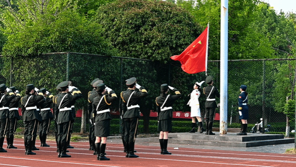早6:50,伴随着雄壮的国歌声,鲜艳的五星红旗在操场上冉冉升起。全体师生肃立,向国旗行注目礼,表达对祖国的无限热爱和崇高敬意。