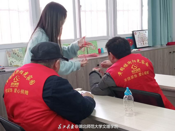 活动中,志愿者仔细讲述中国结承载的吉祥寓意,原本静止的绳结,仿佛被注入生命力。随后,他们将制作步骤清晰拆解,细致讲解,并与残障人士结对,开启一对一指导。手把手教学,耐心与鼓励交融,现场满是融融暖意,欢笑声在活动场地里不断响起。