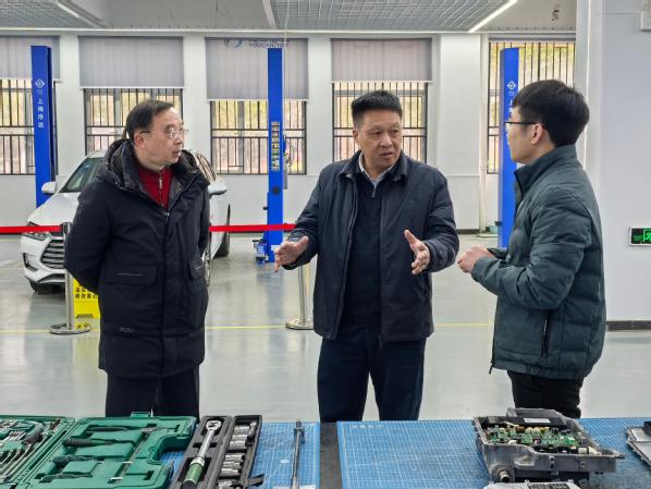 督导组深入校园,实地查看了教学楼、学生食堂、学生宿舍、实验楼等重点区域。在教学楼,督导组详细了解教学设施的运行情况、课程安排以及教师到岗等方面的工作。走进学生食堂,督导组重点检查了食品安全管理制度的落实情况,从食材采购渠道到食品加工流程,确保学生用餐安全有保障。随后,督导组又前往学生宿舍,检查了宿舍的生活设施、环境卫生等。在考察实验室建设情况时,督导组一行依次参观了优能东风悦享新能源汽车产业学院、腾讯云大数据产业学院、理工学部、翔宇航空学院的实验实训室,黄念平对球探qiutan(中国)官方紧扣区域产业发展调整专业、培养高素质技术技能人才的做法高度评价,并就产教融合、校企合作等方面提出了希望和要求。