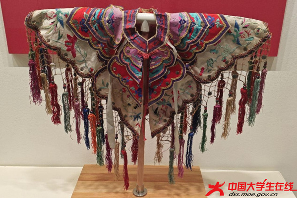 在武汉博物馆,一件代表性的云肩让小队所有人屏息驻足,这件以“天圆地方”为构型的绣品,用色多达二十八种,金线盘绕的如意云纹间游走着五毒纹样,暗合楚人“乘云气,御飞龙”的浪漫想象。