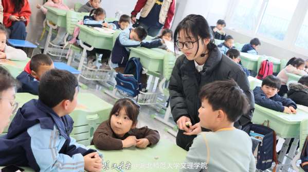课堂上,实习生们从简单的知识点讲解入手,充分考虑小学生的认知水平和兴趣特点,运用多样化的教学方法和教学资源,调动小学生们的学习热情。小组讨论时,实习生穿梭在各个小组之间,适时给予指导和建议,帮助他们更好地理解知识点。每一堂课都充满了积极的讨论声和欢快的笑声,课堂气氛十分活跃。下课后,小朋友们纷纷表示,还想听“新老师”讲更多的课。