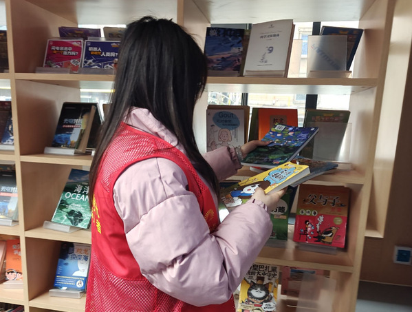 活动间隙,志愿者们协助社区工作人员对社区图书角进行了全面整理,将每一本书安置在专属的“家”。