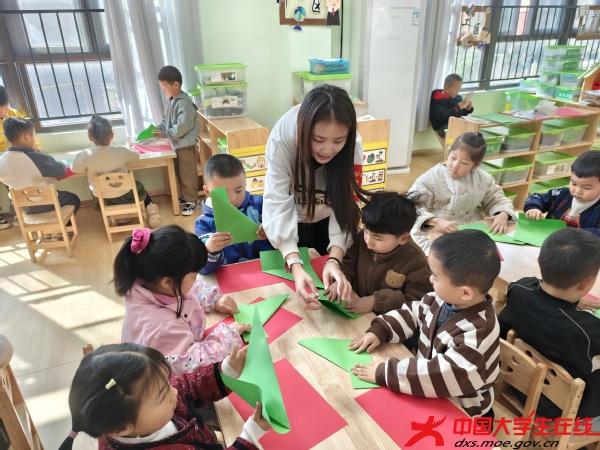 随后,志愿者将雷锋精神的传承融入手工课堂。通过播放动画短片《雷锋的故事》,以孩子们喜闻乐见的形式展现雷锋助人为乐、爱岗敬业的感人事迹。在手工制作环节,志愿者一边讲解雷锋帽的象征意义——红色的五角星代表着全心全意为人民服务的精神,一边手把手指导孩子们用彩纸折叠雷锋帽。活动现场,孩子们兴致勃勃地完成了30余顶独具特色的手工作品。
