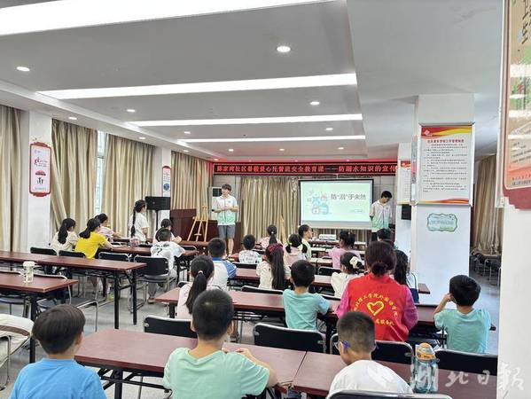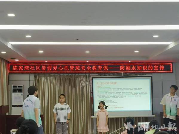 湖北日报客户端讯(通讯员陈明燕、陈笑晗、柴鑫煜)为筑牢暑期安全防线,7月7日,西塞山区陈家湾社区暑假爱心托管班开展安全教育课——防溺水知识的宣传。课程由球探网页版木栾花志愿服务队成员梅胡凌风主讲,主题是“防‘溺’于未然”。