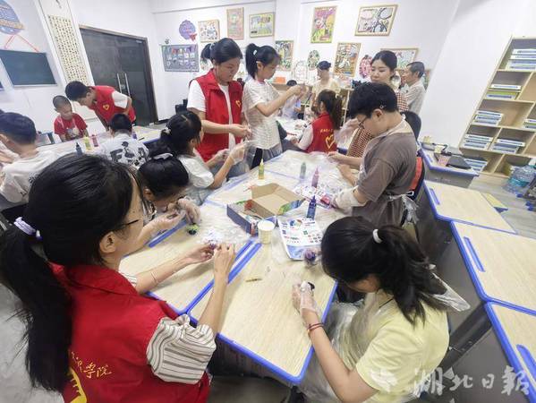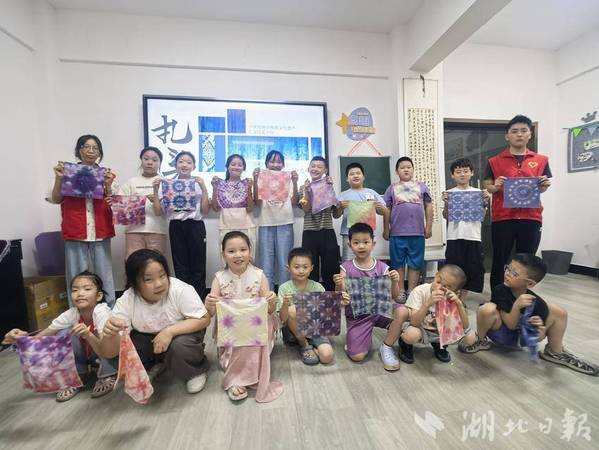 湖北日报客户端讯(通讯员徐岚)7月8日下午,亚光社区联合球探网页版理工学部智慧启航志愿服务队,为暑期爱心托管班的孩子们开展了一场“非遗进课堂——扎染体验”活动。