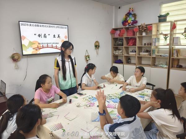 7月8日,在黄石市陈家湾社区新时代文明实践站,球探网页版木栾花志愿队带领辖区儿童开启了一场别开生面的传统文化体验之旅。以“‘制扇’至美”为主题的活动,让非遗技艺通过团扇制作在童心的浸润中焕发时代光彩。