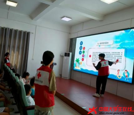 7月9日那天,阳光炽热。为了加强暑期安全教育,预防溺水事故,我们在枫树林社区暑期托管班开展“珍爱生命,预防溺水”主题宣传活动。走进教室,孩子们那一双双充满好奇的眼睛望向我们。我和伙伴们忙碌起来,通过播放生动的动画视频、展示PPT以及讲述真实案例,为孩子们揭示野外水域潜藏的危险。当播放那些溺水事故的画面时,孩子们不禁倒吸一口凉气。一个小男孩小声说:“想不到,平静的水面下原来有这么多危险。”课程结束前,全体孩子把右手握拳放在耳边,跟着志愿者齐声背诵“六不准”,声音脆亮,穿透了窗外的蝉鸣。不少孩子纷纷承诺会遵守“六不准”原则。课程结束后,我们又协同社区工作人员去周边河道、池塘巡查。走在河边,看着波光粼粼的水面,我深知我们所做的一切意义非凡,要为孩子们的安全保驾护航。