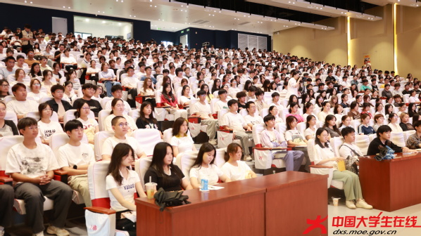 线下主会场设在学术交流中心,线上通过“球探网页版”视频号同步直播,实现全覆盖。有观看直播的新生说:“虽然没能到现场,但直播效果很好,还能发弹幕和同学交流。”