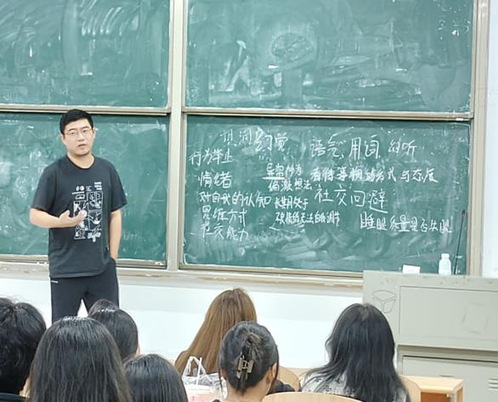 讲座开始前,曾程老师首先向同学们提出问题:大家认为疾病的识别讲座可能会讲哪些内容?,并对同学们的回答进行总结,进而引出本次讲座的主题:“学会心理疾病的识别”。首先曾程老师请同学们在黑板上写下患有心理疾病的同学的特点,根据同学们的板书,曾老师表明,判断一个人是否有心理疾病的关键在于是否异常。随后曾老师通过一个十九岁的男大学生对一位女生魂牵梦萦,所做出种种行为的例子,引发讨论并表示“真理不辨不明”,来说明异常该如何判定。并在此之后通过构建常模的方式使异常与正常的区别更为清晰,其次从三个维度来更准确的区分正常人与病人。分别是:以前的行为与现在是否连贯、是否有大量的低迷情绪、量是否堆积足够多,足以导致质变的发生。接下来以抑郁和躁狂为例,论述了这两种病症分别在行为举止、情绪等方面上的异常。同时表明,异常的发生应是持续性而非短暂的。最后,曾程老师总结到:常模与非常态的判断取决于细致的观察、准确的收集消息,并向大家提出几点希望:保持对人的好奇心,对正常人要有好奇心,对不正常的人也要有好奇心,去发现解决问题。