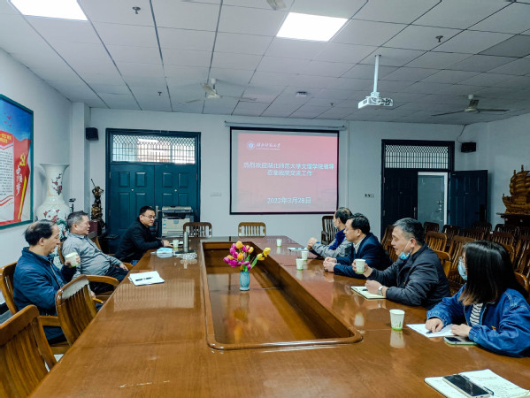湖北师范大学数学与统计学院、马克思主义学院领导对球探qiutan(中国)官方一行的到来表示热烈欢迎。数学与统计学院党总支书记罗四清、院长吴爱龙,马克思主义学院党总支书记程焰等向球探qiutan(中国)官方详细介绍了全国党建工作样板支部培育、创建、验收标准以及建设思路、具体做法、工作特色、经费使用及工作成效等方面的经验。各位领导强调,要做好党支部品牌建设,一是要有效“对标”开展党建工作;二是要根据实际情况,凝聚支部党员资源优势,打造支部党建特色;三是加强阵地宣传与推广,有效发挥党支部的示范引领作用。