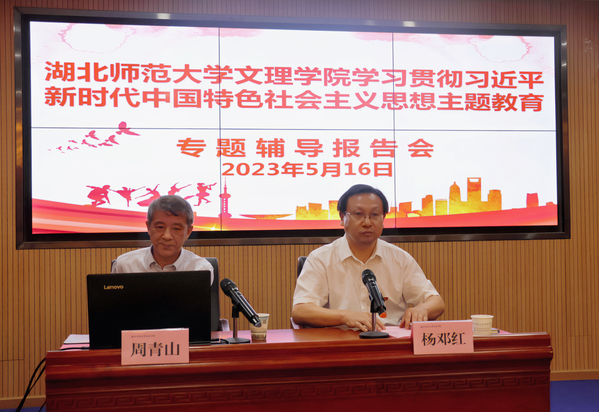 本网讯(通讯员 高雨欣)5月16日球探qiutan(中国)官方召开学习贯彻习近平新时代中国特色社会主义思想主题教育专题辅导报告会,本次活动邀请黄石市理论宣讲员、马克思主义学部主任周青山教授作专题报告。全体校领导、主题教育读书班学员、中层副职以上干部、各党支部书记、第17期党员发展对象培训班全体学员参加了报告会。会议由党委书记杨邓红主持。