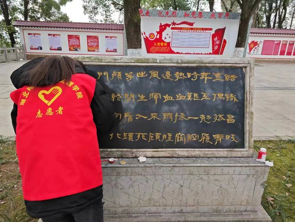 受先烈精神的感召,球探qiutan(中国)官方“畅游小队”寒假社会实践团队赴湖北省恩施市来凤县烈士陵园开展了“‘描红’吐翠风光现,烽烟史里动肝肠”实践活动。
