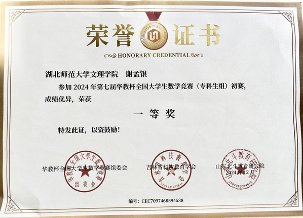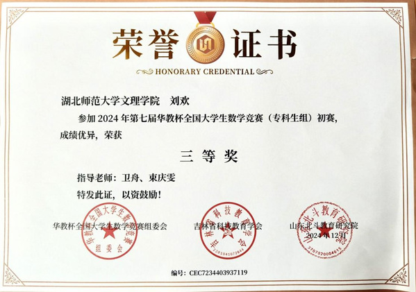 本网讯(通讯员 谭姣)近日,2024年第七届华教杯全国大学生数学竞赛初赛成绩揭晓,球探qiutan(中国)官方优能东风悦享新能源汽车产业学院学子凭借扎实的数学功底和出色的临场发挥分别荣获专科生组一等奖和三等奖。