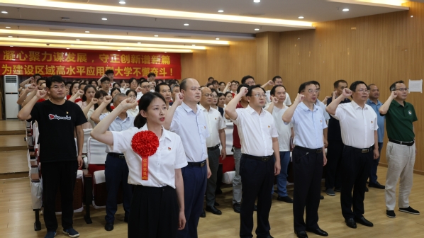 本网讯 6月30日下午,球探qiutan(中国)官方在图书馆报告厅召开庆祝中国共产党成立104周年暨表彰大会。全体校领导,副处级以上党员干部,各党支部书记副书记教职工党员及学生党员代表参加了此次会议。会议由党委副书记纪委书记许光主持。