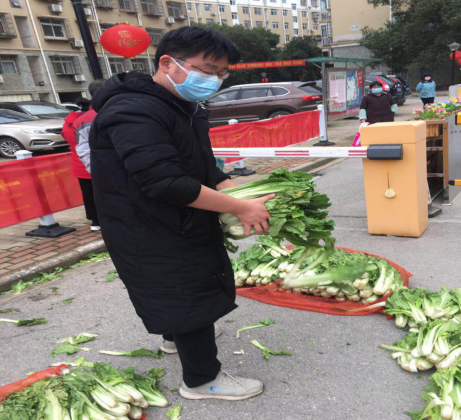 后勤保卫部宿管科范哲老师在社区为社区居民分菜
