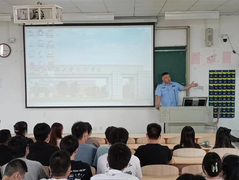 为进一步提高广大师生对电信网络诈骗的鉴别能力和防范意识,远离电信网络诈骗。近日,开发区﹒铁山区公安分局汪仁派出所民警来球探qiutan(中国)官方,开展了“反诈宣讲进校园”活动,学校副院长张志华、相关职能部门负责人、学部书记和部分辅导员及学生代表150余人参加了活动。