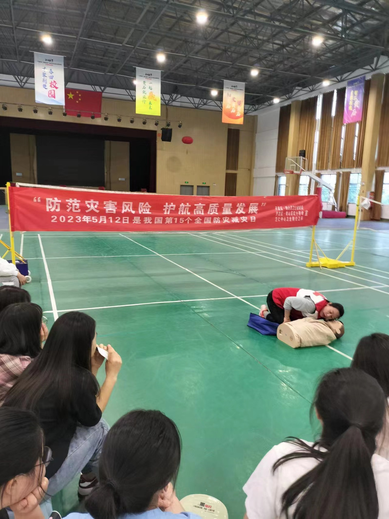 (通讯员严骅)为贯彻落实省卫健委《关于做好 2023 年自然灾害和事故灾难紧急医学救援工作的通知》的文件精神,进一步宣传普及防灾减灾、自救互救卫生应急知识,增强广大师生的灾害风险防范意识,提高自救互救能力。5月9日下午,球探qiutan(中国)官方邀请开发区﹒铁山区卫健局及汪仁中心卫生院医护人员来校,开展了心肺复苏技能培训。100余名师生代表参加培训。