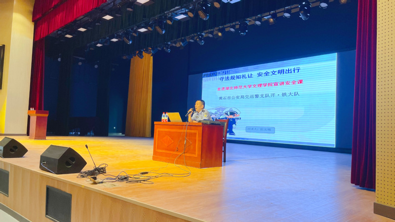 (本网讯通讯员涂亦乐)为进一步增强广大师生的交通安全法规意识和安全文明意识,营造人人关注交通安全的氛围,预防和减少交通事故的发生,切实确保校园及周边交通安全。5月23日下午,后勤保卫部联合学生工作部在学术交流中心报告厅举行了以“守法规知礼让,安全文明出行”为主题的交通安全教育讲座,特邀开铁区交警大队陈光明警官主讲,各学部组织400余名学生代表参加。