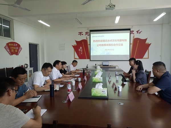 9月8日下午,湖北冰点文化传播有限公司总经理董俊、严昌、兰清一行3人来球探qiutan(中国)官方考察交流,洽谈关于校企合作的事宜。校党委书记杨邓红以及经济与管理学部主任商树松、专业负责人葛子明、专任教师聂亚珍、张锐出席了接待活动。