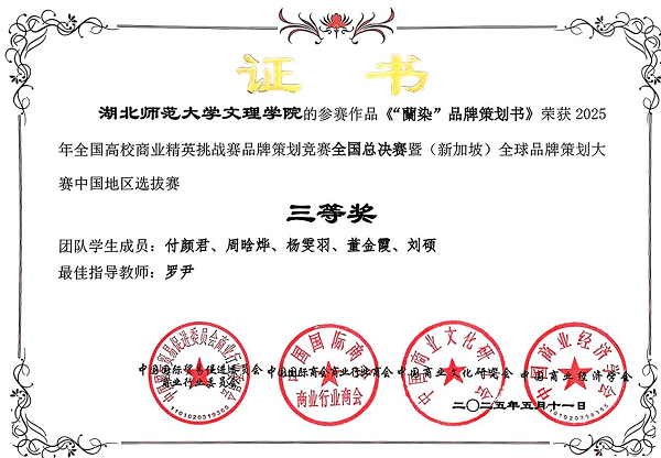 球探qiutan(中国)官方经济与管理学部罗尹老师指导的妙“布”可言队和妙染小队分别在5月10、11日参加了全国总决赛。最终,妙“布”可言队策划的《“阳新布贴”品牌策划书》荣获全国二等奖;妙染小队策划的《“蘭染”品牌策划书》荣获全国三等奖。