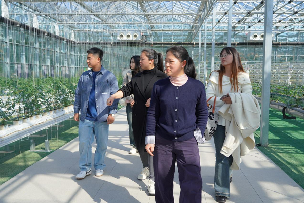 与此同时,活动还聚焦乡村振兴的生动实践。学院老师带领学生们前往曹家晚村果蔬产业园实地参观,详细了解该园区在引进国外优质幼苗、运用智能化科技种植技术等方面的创新举措,并与村委会办公室负责人就“如何用电子商务将农产品走‘活’”这一话题进行了交流学习,旨在通过“党团引领+产教融合”,为学生搭建贴近产业、服务地方的实践育人平台。