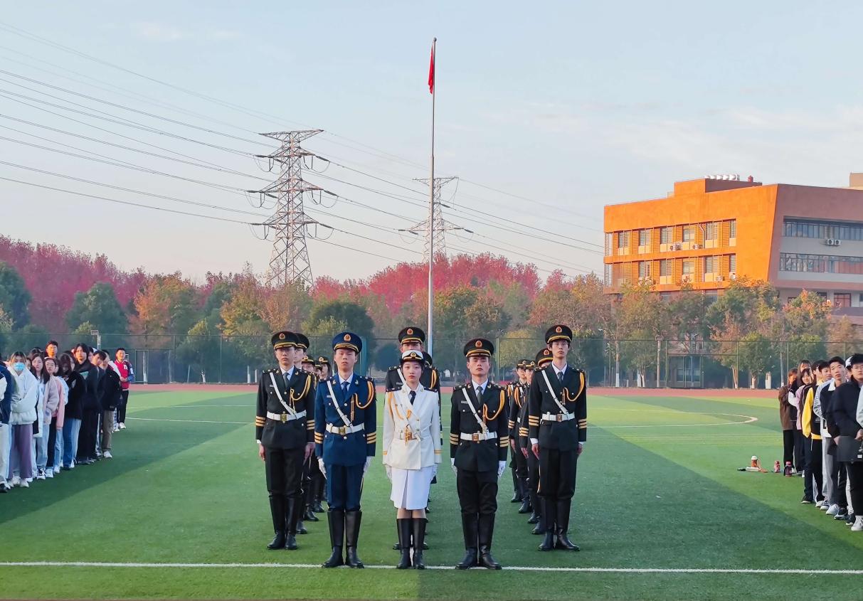 2021年11月15日早上七点,理工学部1100名师生在田径场举行庄严的升旗仪式。伴随着晨风,迎着朝霞,升旗仪式正式开始,校国旗班的同学气宇轩昂,踏着整齐的步伐护送国旗走向升旗点。伴随着雄壮的《义勇军进行曲》,五星红旗冉冉升起,全体师生怀着无比崇敬的心情,庄严肃立,行注目礼,表达了全体师生坚定听党话,感党恩,跟党走的理想信念。